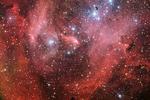 7 September 2011: Space is a colourful place! Take, for example, this beautiful new photo of a bright star cluster surrounded by blue and red clouds of gas (click on it to see it in full).