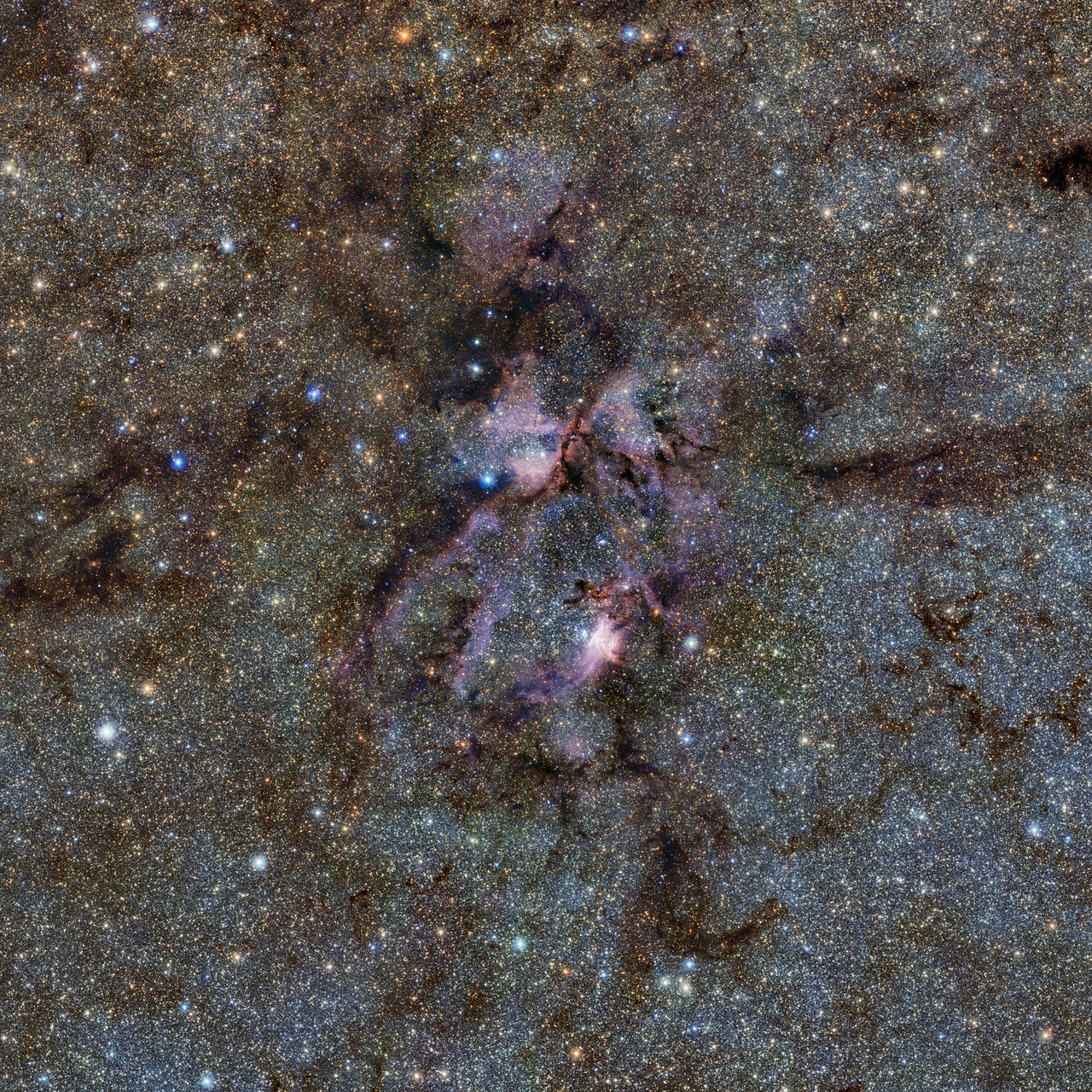 Dan ir-ritratt juri żona ta' spazju mimlija sħab kbir ta' gass u toroq mifruxa ta' trab skur, li jissejjaħ nebula. Ġo dan is-sħab hemm l-istilel li qed jikbru, li jiddu dawl qawwi blu fl-abjad meta jidher b'dawl viżibbli. Minkejja dan, VISTA jħares lejn is-sema b'dawl infra-red, tip ta' dawl li għajnejna ma jarax. F'dawl 'viżibbli' - it-tip ta' dawl li għajnejna jistgħu jaraw - kollox jidher differenti ħafna. Ħares hawn u tista' tifhem għaliex din is-sħaba xi kultant tissejjaħ il-'Lobster Nebula'.