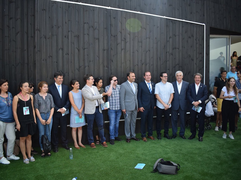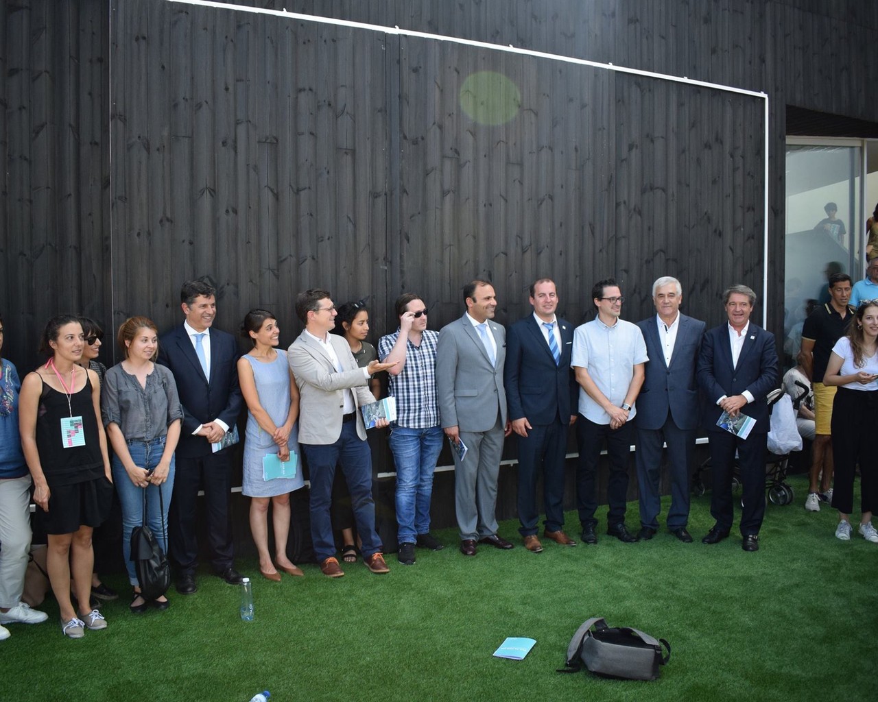 The minister of Economy, Manuel Caldeira Cabral, and the mayor of Figueira de Castelo Rodrigo Paulo Langrouva with StixCamp 2017 participants during the inauguration of the Open Science Platform.