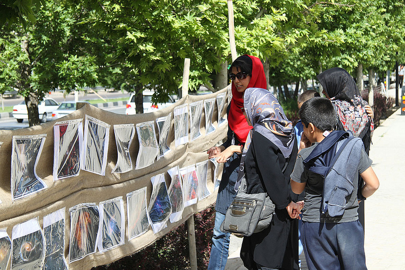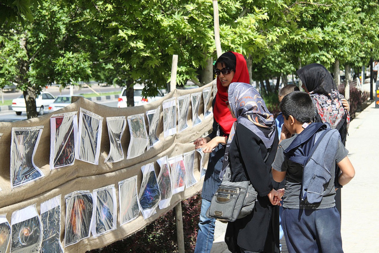 The public enjoy an exhibition of astronomical images in the centre of Shiraz, Iran during the country's Astronomy Day 2013.