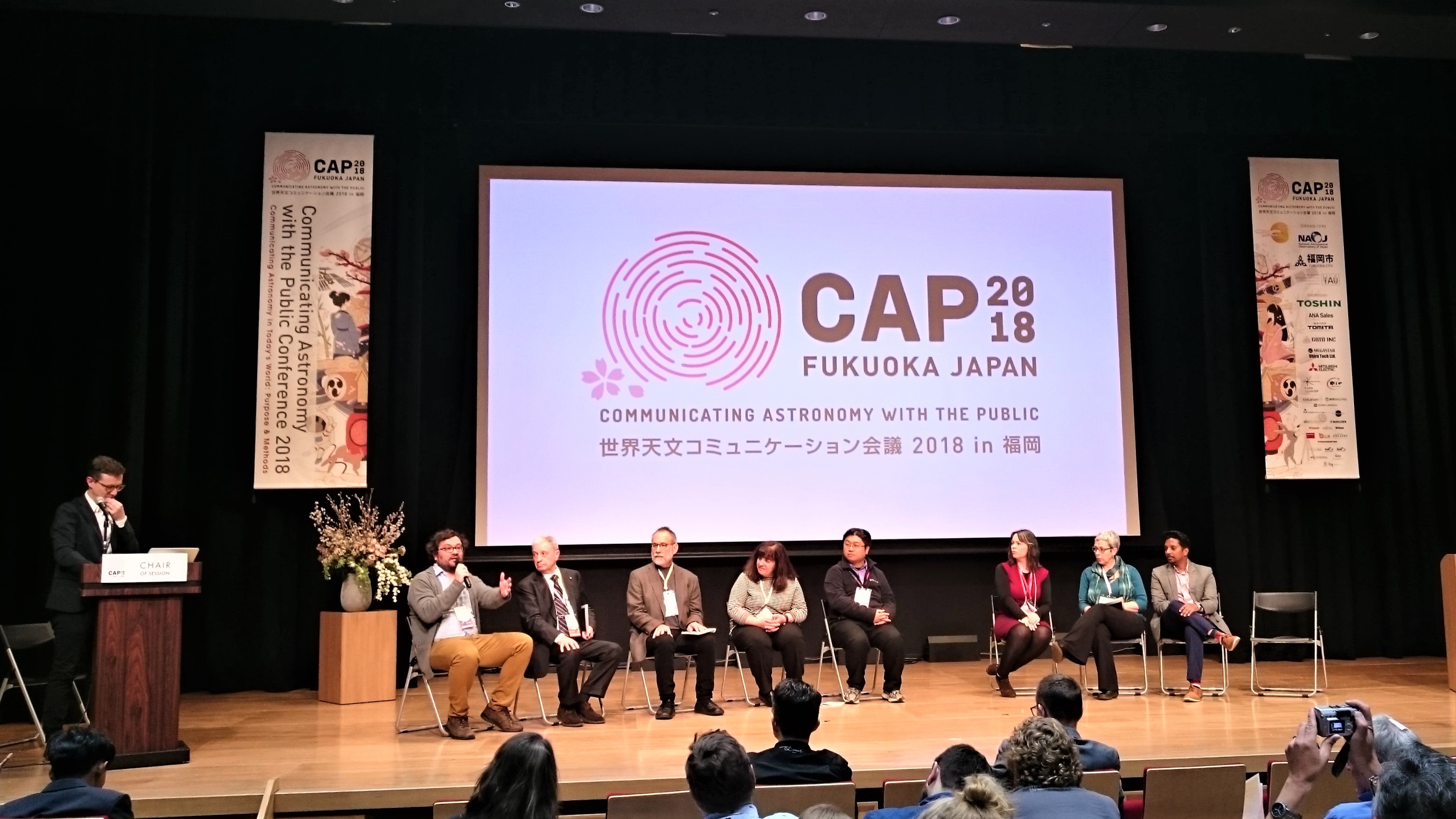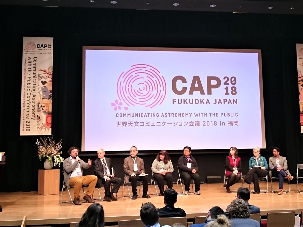 IAU100 Special session at CAP2018. Left to right: Pedro Russo, Jorge Rivero González, Piero Benvenuti, Stephen Pompea, Constance Walker, Sze-leung Cheung, Lina Canas, Rosa Doran, Thilina Henaatigala.