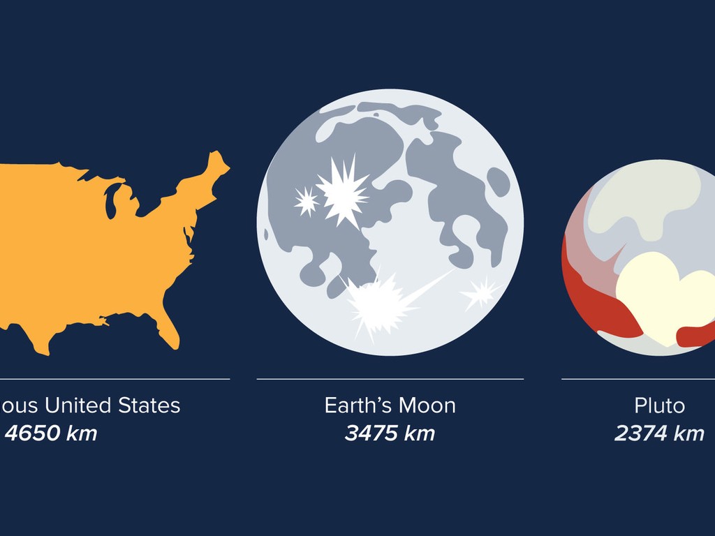 This chart shows the size of a potential new dwarf planet called DeeDee, compared to other objects in the Solar System.