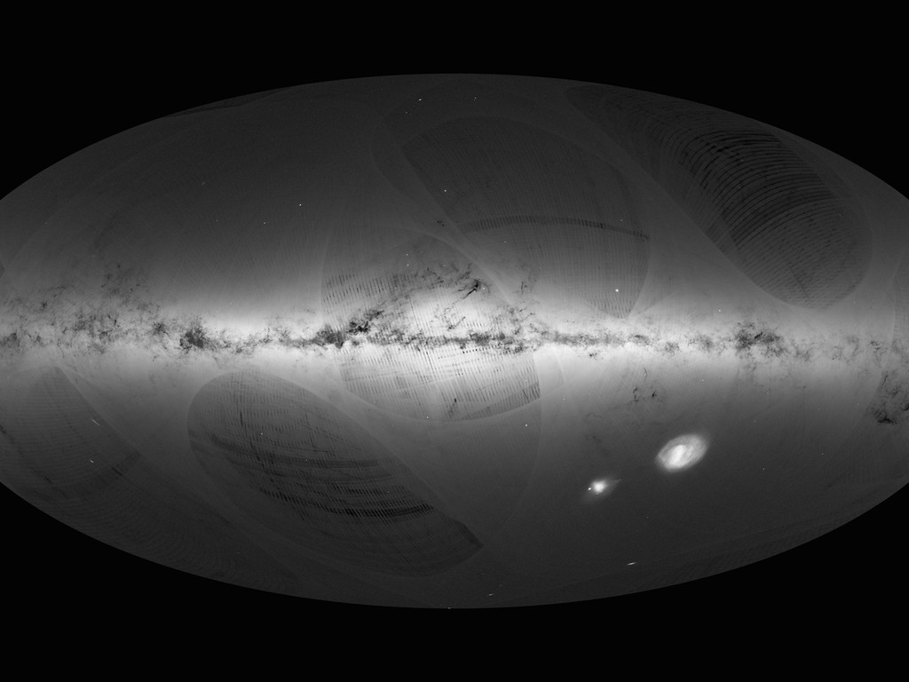 The Gaia satellite is using a powerful camera to measure the distance to stars and create the most detailed map of our Galaxy yet. This is it's first sky map, of 1,100 million stars!