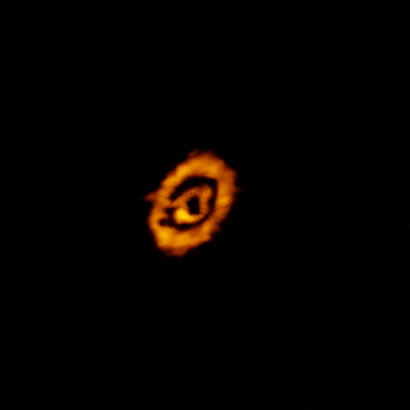 This picture shows a young star surrounded by two thick rings of gas and cosmic dust that might one day form into planets! Picking through the rings around that star they found gas containing delicate molecules that astronomers didn't think were able to survive in such conditions.