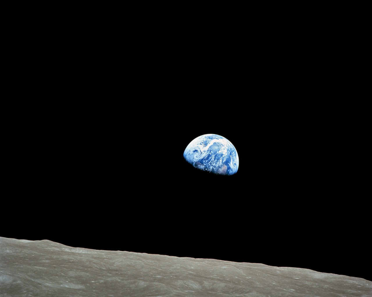 Earthrise is the name of this photograph of the Earth, that was taken by astronaut William Anders in 1968 during the Apollo 8 mission. It has been described as "the most influential environmental photograph ever taken."