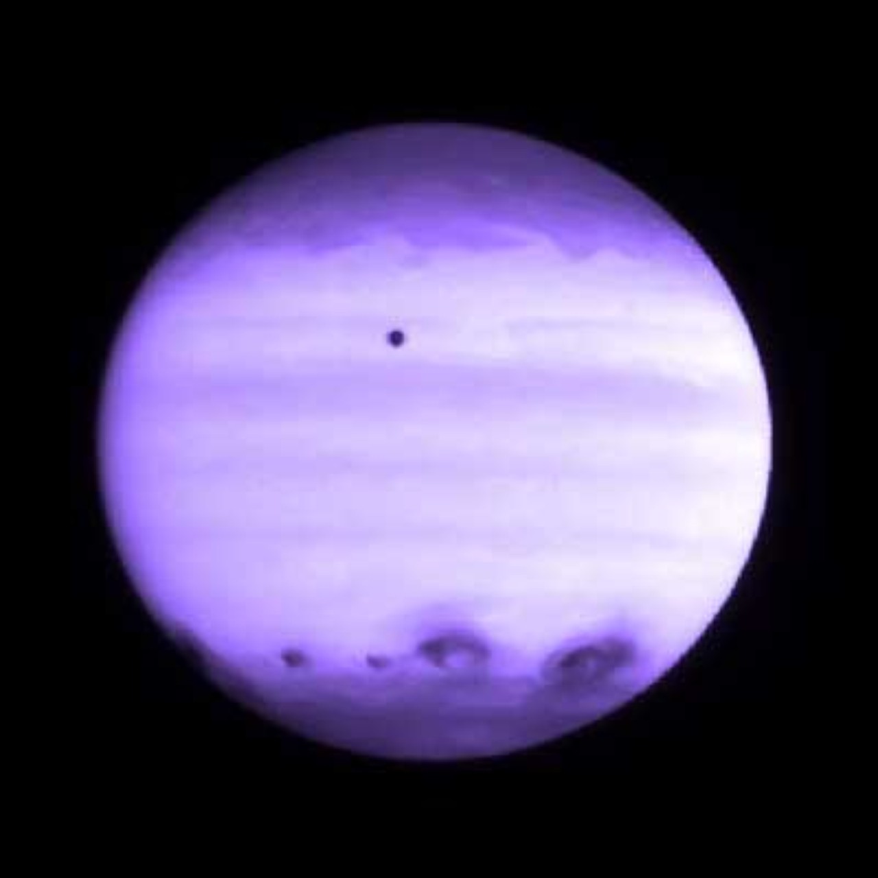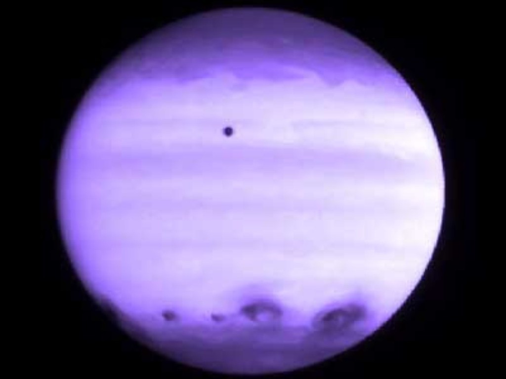 Can you see the dark spot on Jupiter in this picture? That is the mark created when comet Shoemaker-Levy 9 crashed into the planet in 1994. The dark spot is 6000 km across!