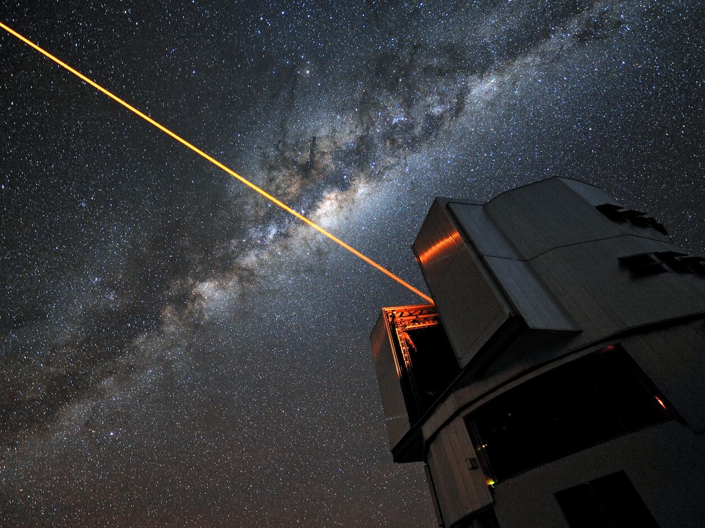 This picture shows a powerful laser shooting from the Very Large Telescope in Chile. A set of similar lasers could be used to cloak the Earth from searching alien eyes.