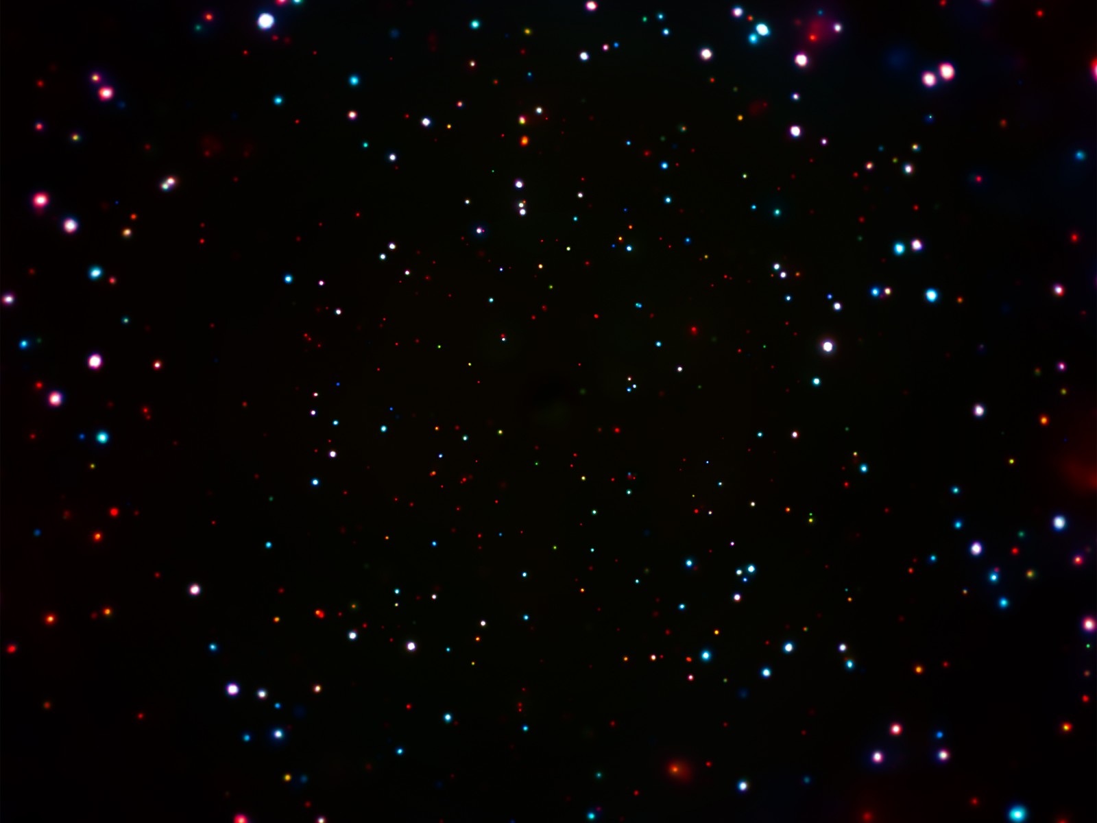 This picture shows us further into the Universe than we've ever seen in X-ray light, revealing lots of very faint objects that previous images weren't able to detect. Almost three-quarters of the points of light in this picture are distant black holes, the others are galaxies. The colours tell us how energetic each object is: objects with the least energy are red and the most energetic are blue.