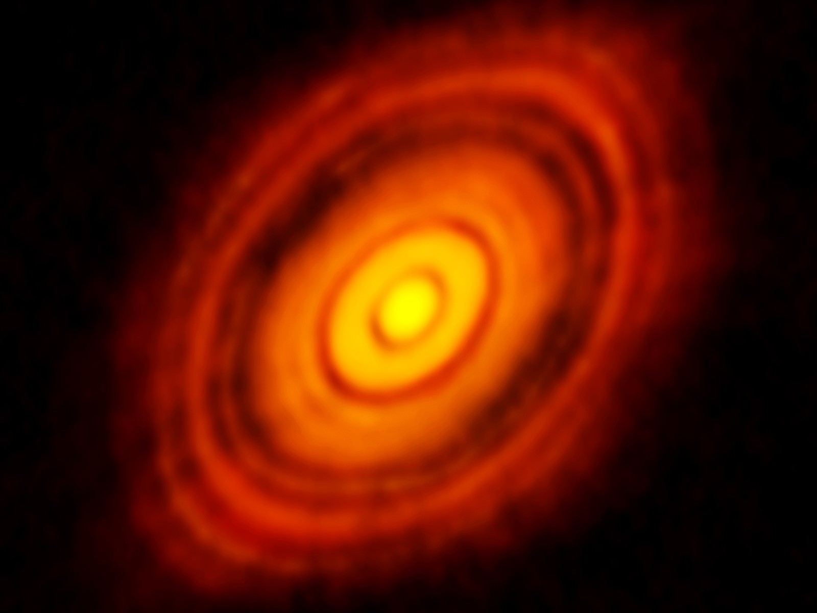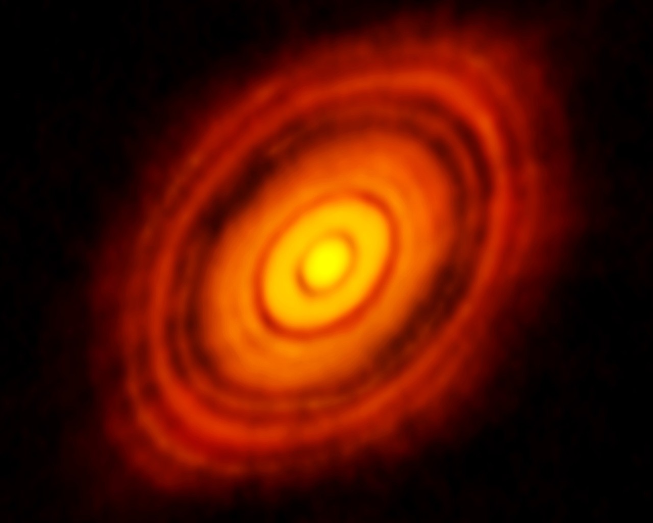 This amazing space photograph taken by the ALMA telescope shows the a Solar System being born around a distant star.