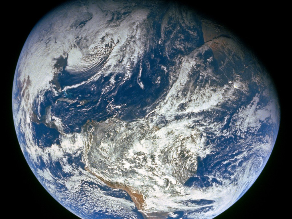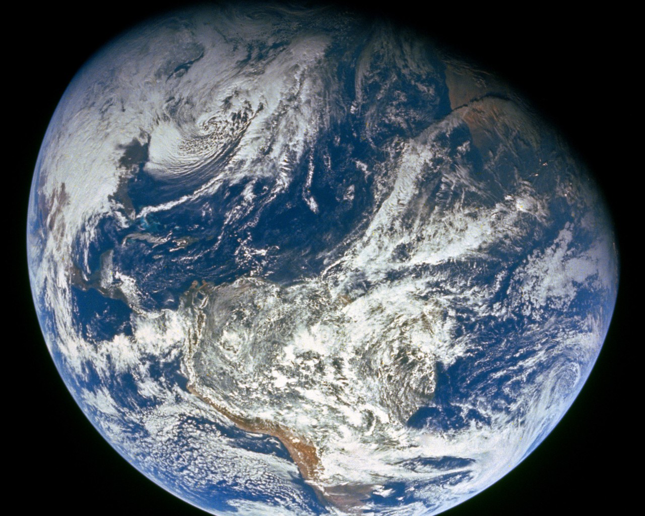 This is a picture of the Earth as a whole planet from space. It was taken by astronauts during the Apollo 8 mission in 1968. This was the first manned spacecraft to reach the Moon, which they orbited around before returning safely to Earth. The crew were the first people to ever see this view of Earth!