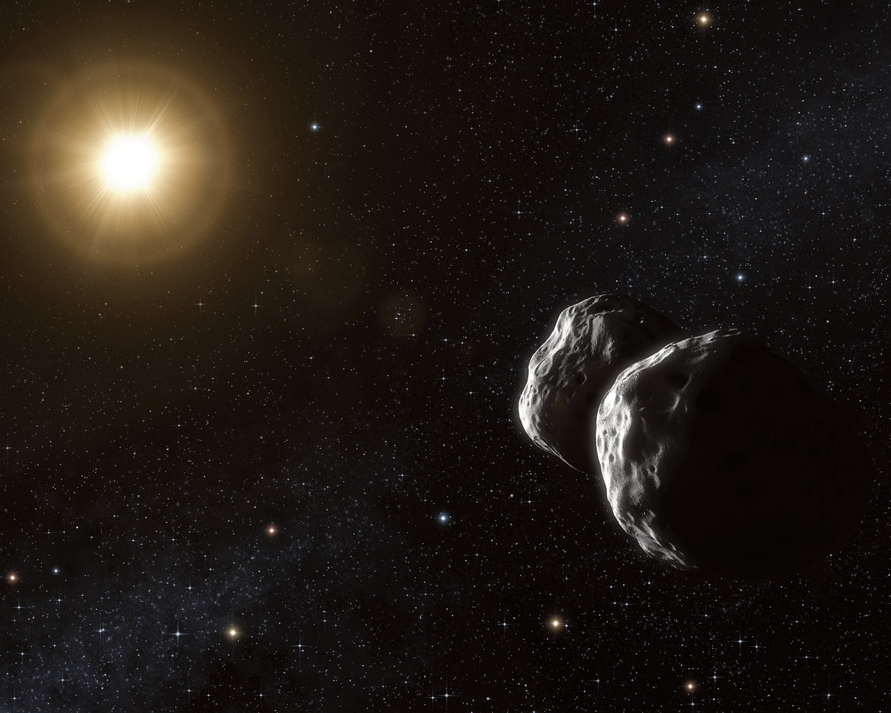 This picture is an artist's drawing of an asteroid, similar to an asteroid that was recently spotted in Jupiter's. It turns out this asteroid is an immigrant that has moved-in from a different Solar System!