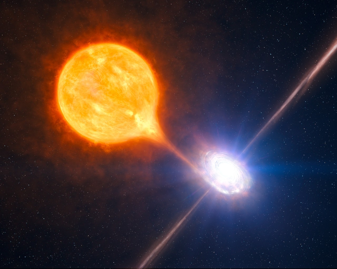 When neutron stars have a nearby “companion” star, they often steal the gas from their friend. That's what we're seeing in this picture.