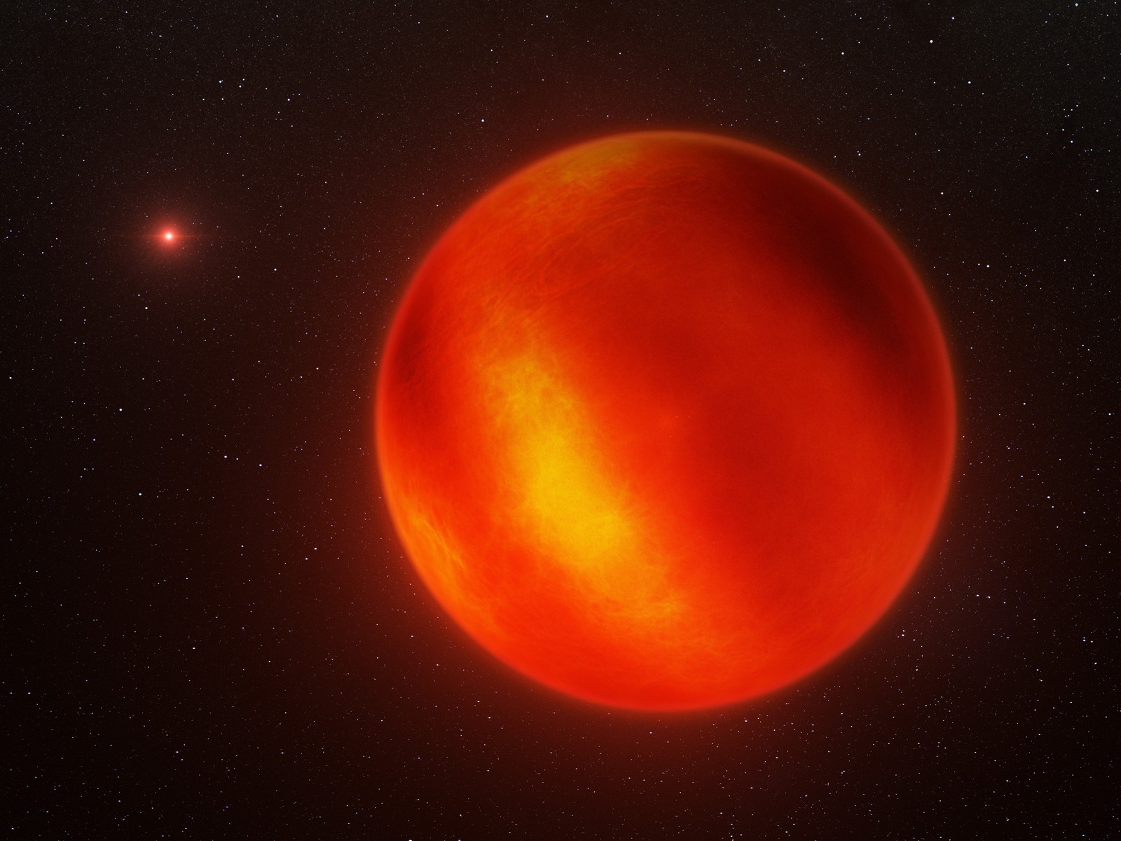 Using very powerful telescopes, scientists have just created the first ever map of the weather on a brown dwarf! Using a clever technique astronomers were able to create a map of the dark and light patches on its surface. Soon, we will be able to watch cloud patterns form, evolve, and disappear — just like on Earth. This is an artists impression of how that brown dwarf looks.