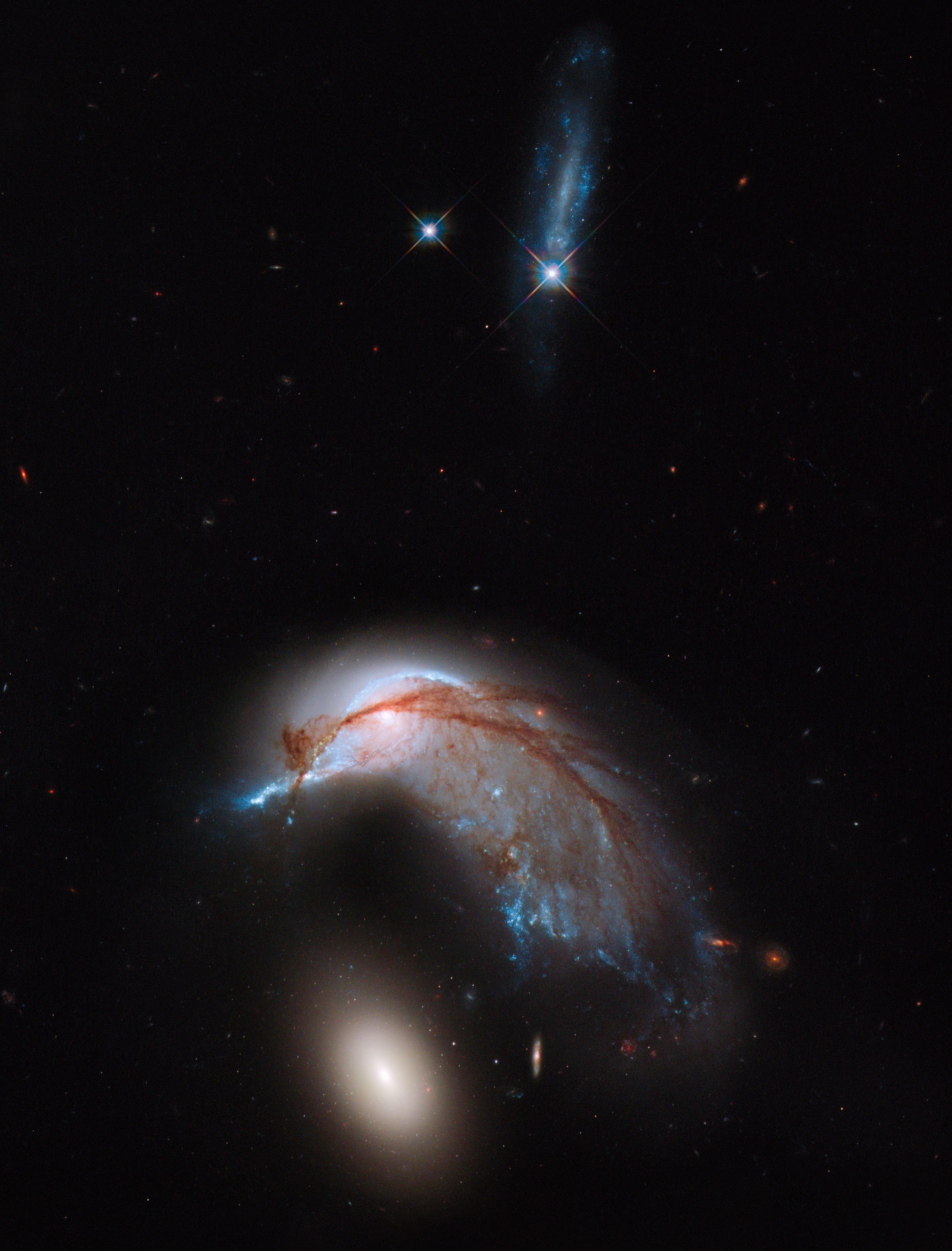 This space photograph shows a pair of interacting galaxies ripping each other apart with their mutual gravity.