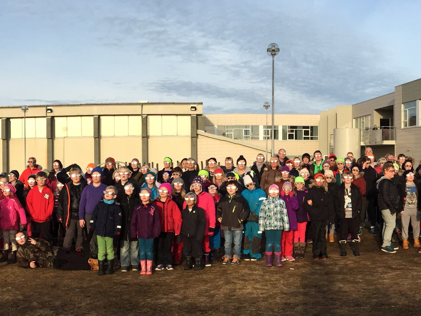 An Icelandic school in Iceland shows off their Solar Shades to safely view the Eclipse. March 2015