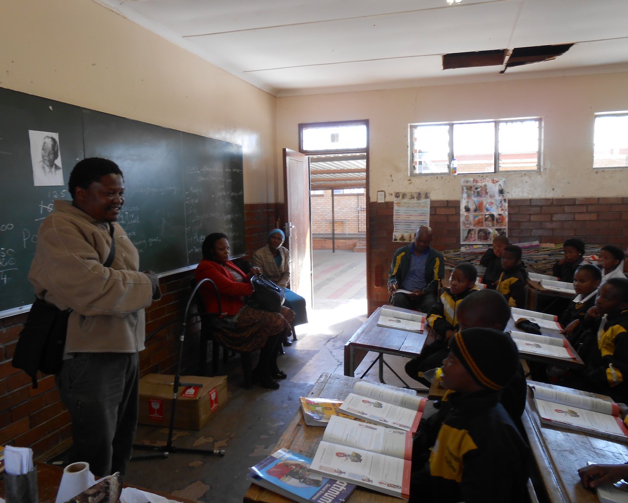 Professor Thebe Medupe addressing learners at a school in Mafikeng
