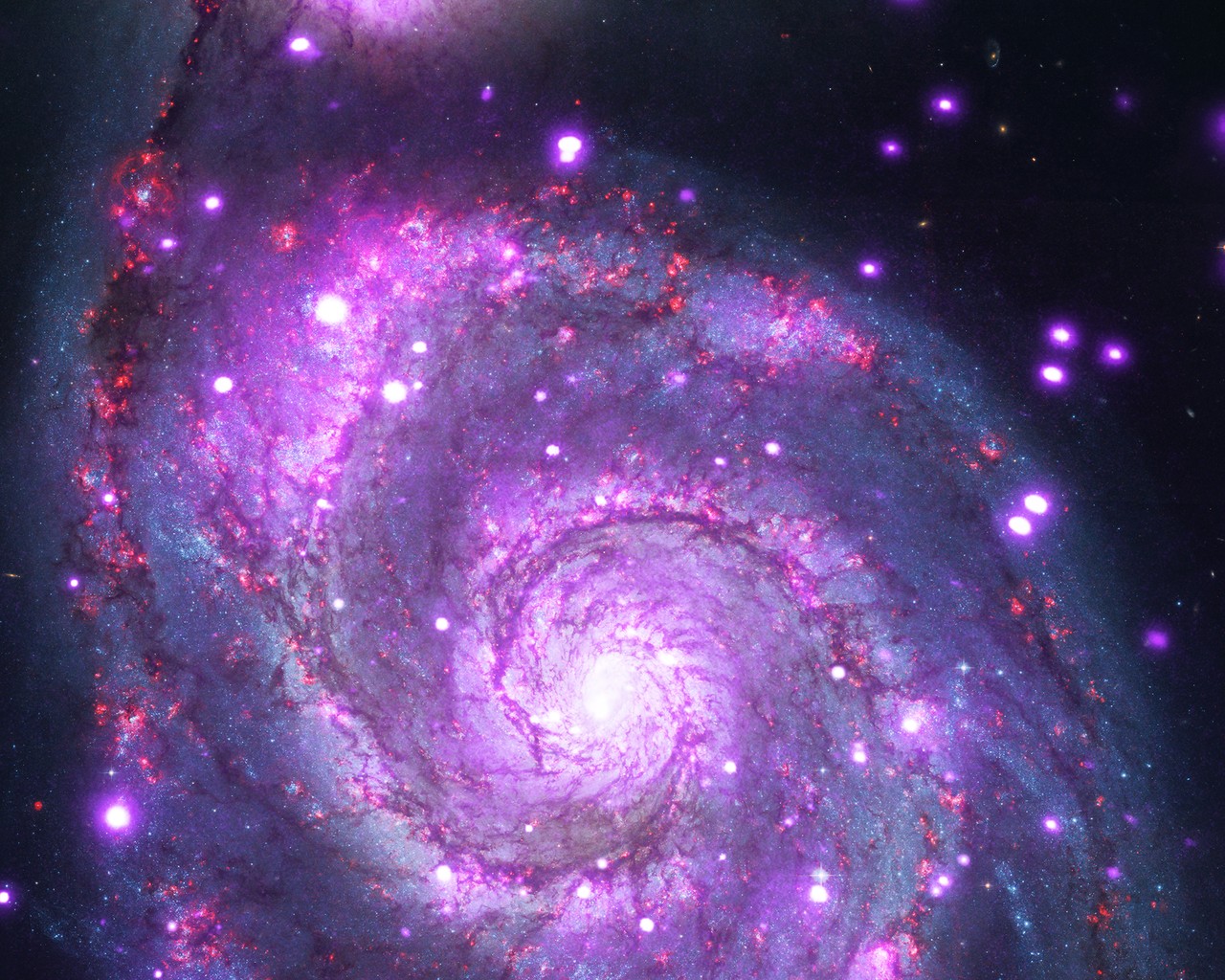 The spiral galaxy in this picture is called the Whirlpool Galaxy and it's home to some extremely bright X-ray sources called ULXs.