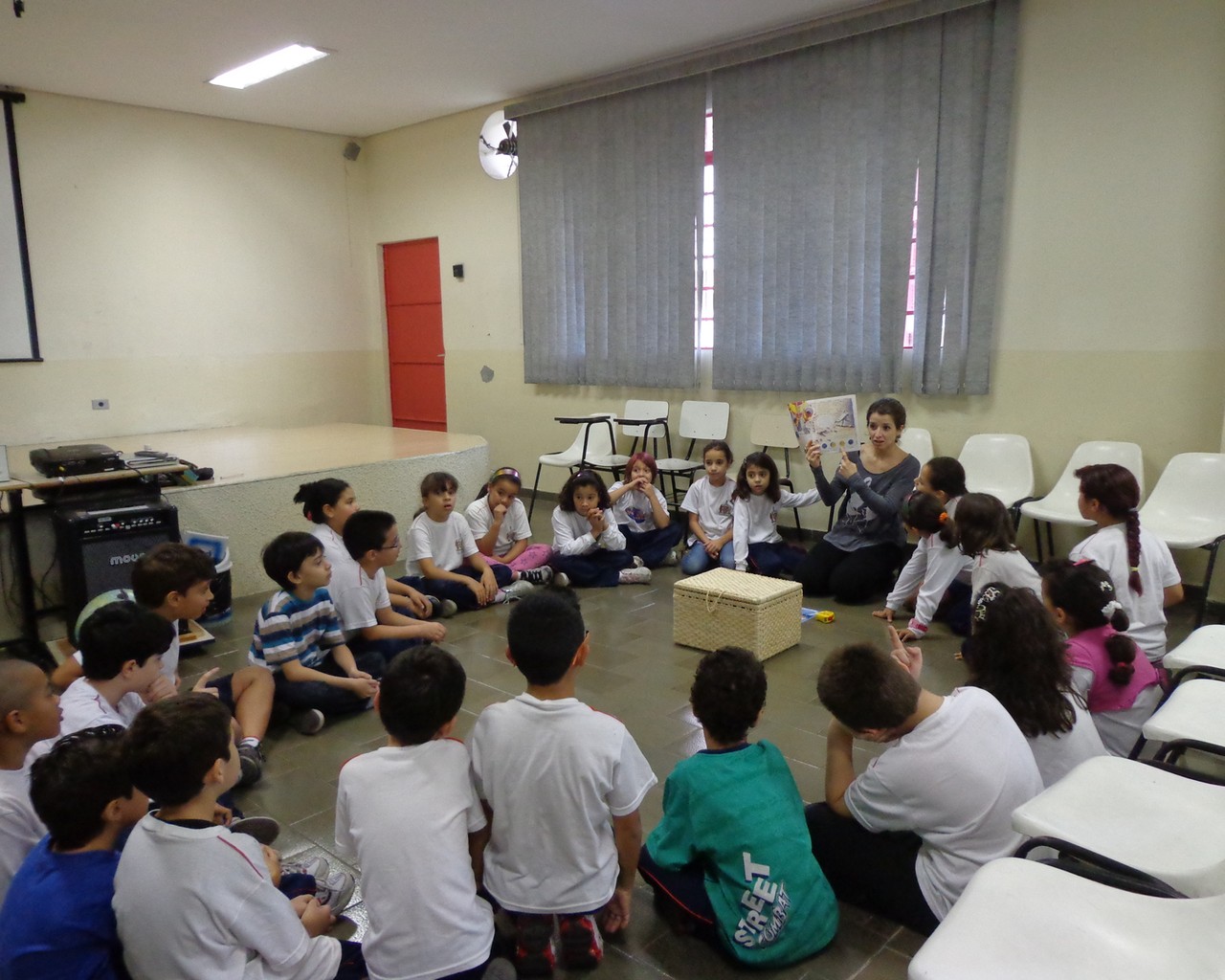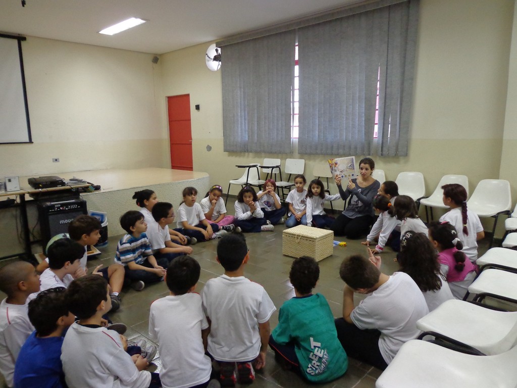 Students of the Viriato Correia public school in Sao Paulo, Brazil, taking part in the an activity with UNAWE student ambassador Lívia Aceto.