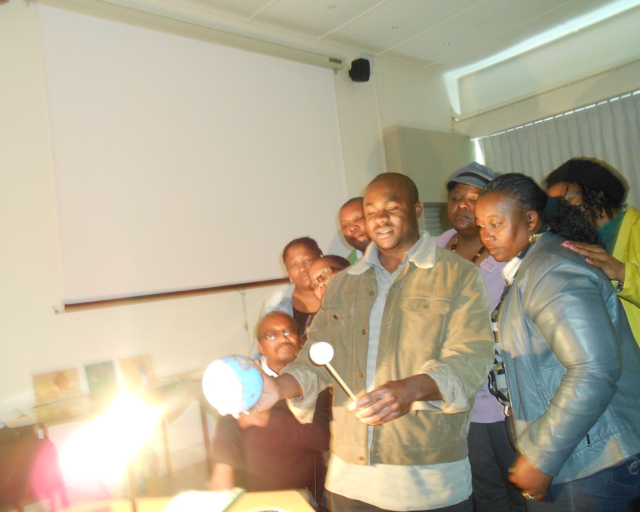 Eli Kasai demonstrating moon phases to educators