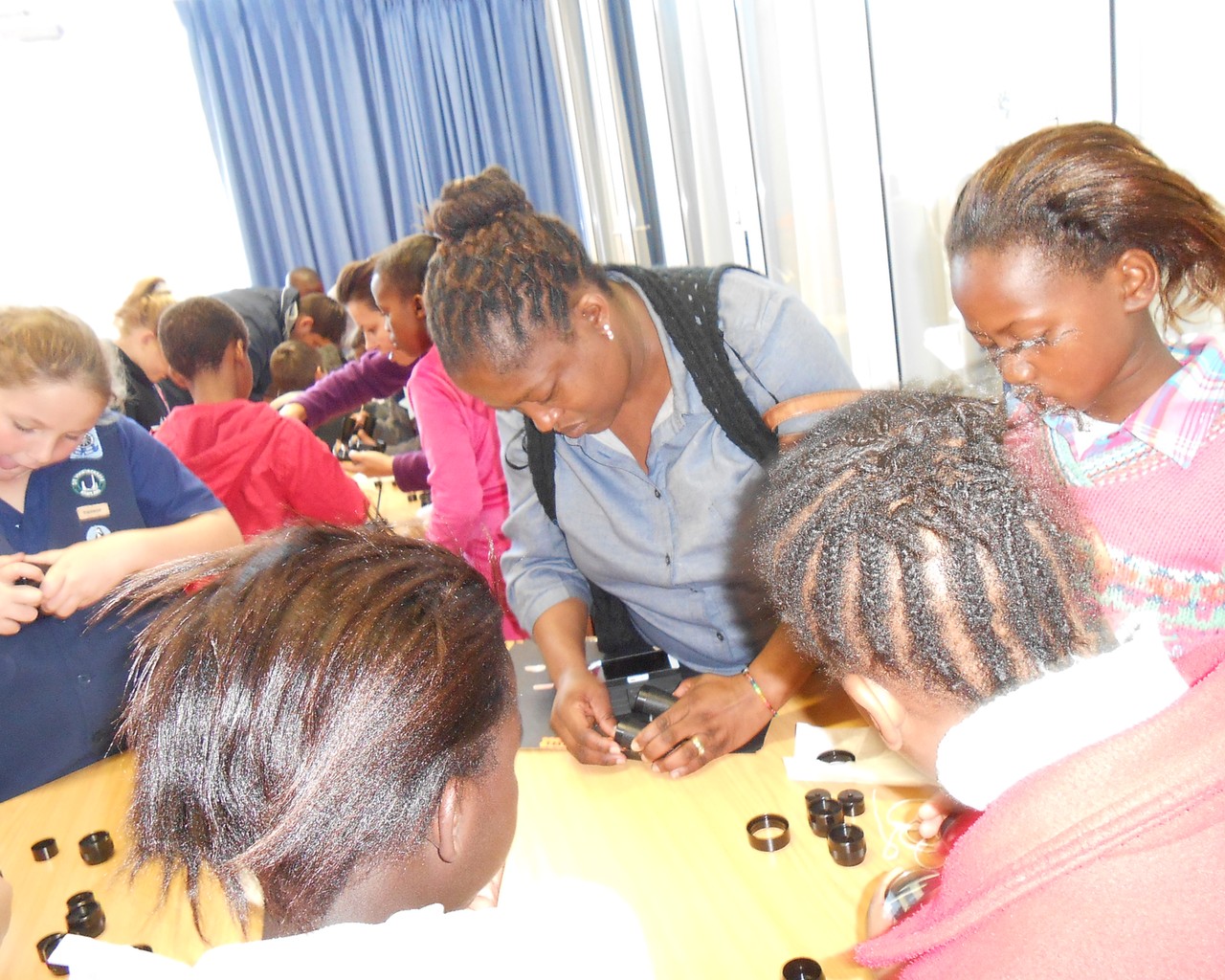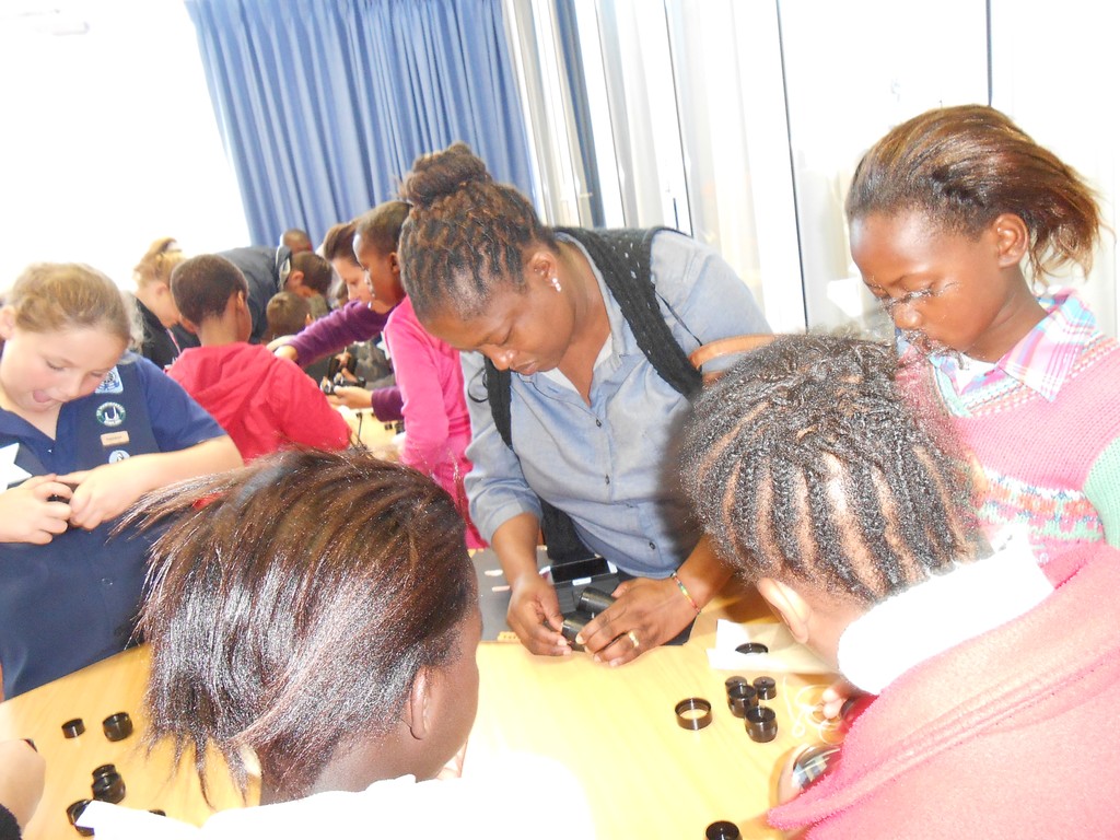 Zodwa, an educator from Lwandla Primary assisting children with their practical activities