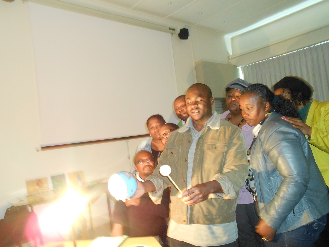 The aim of the this workshop was to train educators on how to use the different astronomy tools and to give the educators an opportunity to pilot the box from September to December at their schools. The workshop was led by PHD student Eli Kasai, who is an intern at the OAD Office. Eli is working on replicating the box in South Africa. Material and activities developed for workshop, were linked to the teaching of Earth and Beyond from grade four to grade six. The key focus areas were day and night, seasons, moon phases and planets. Eli gave practical demonstrations for each of the main concepts and provided educators with additional background information for those concepts. Educators had an opportunity to ask questions related to the teaching of astronomy in the classroom during the session.